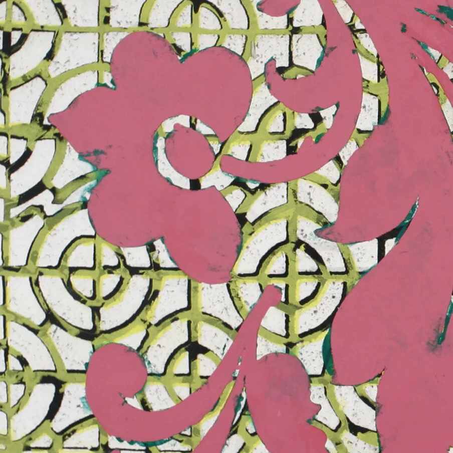 Enamel, acrylic and mixed media on canvas mounted on panel